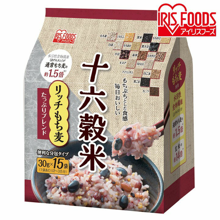 十六穀米 リッチもち麦たっぷりブレンド 450g(30g×15袋)十六穀米 パック 食物繊維 雑穀 穀物 リッチもち麦 アマランサス キヌア たかきび もちきび もちあわ ひえ 黒米 赤米 白麦 黒大豆 小豆 とうもろこし カニワ 白ごま 黒ごま アイリスフーズ[cpir]【★】